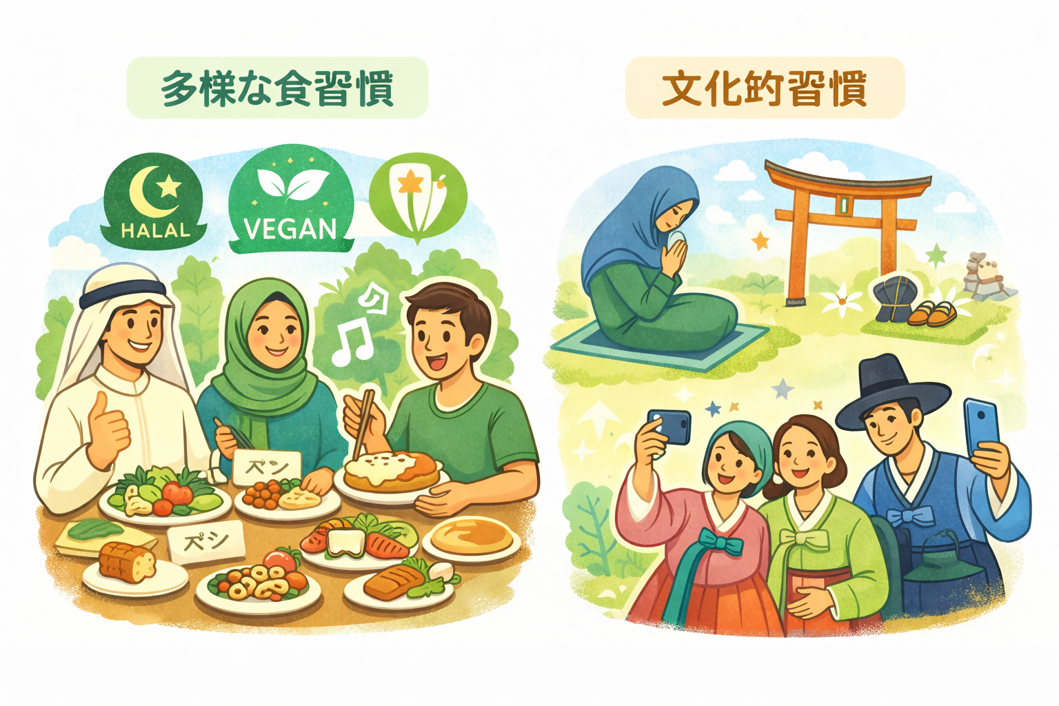 栗原市では、令和7年度観光庁「多様な食習慣や文化的慣習を持つ訪日外国人旅行者の受入環境整備に向けたモデル事業」に採択され、ヴィーガンやハラール対応のメニューを提供する飲食店等や、簡易礼拝スペースを設置する施設を増やすことで、多文化共生そのものを地域の魅力とし、誰もが自分らしく安心して訪れ、暮らし、楽しめる幸せ溢れる観光地をめざしています。